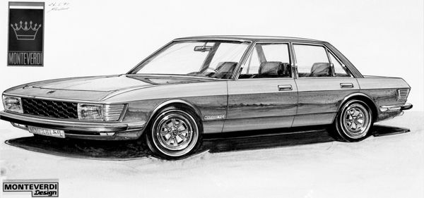 Auf technisch unveränderter Basis war es Peter Monteverdi mit diesem Entwurf gelungen der Limousine ein exklusives und eigenständiges Erscheinungsbild zu geben, welches die typischen Merkmale des MONTEVERDI Design verkörpert.